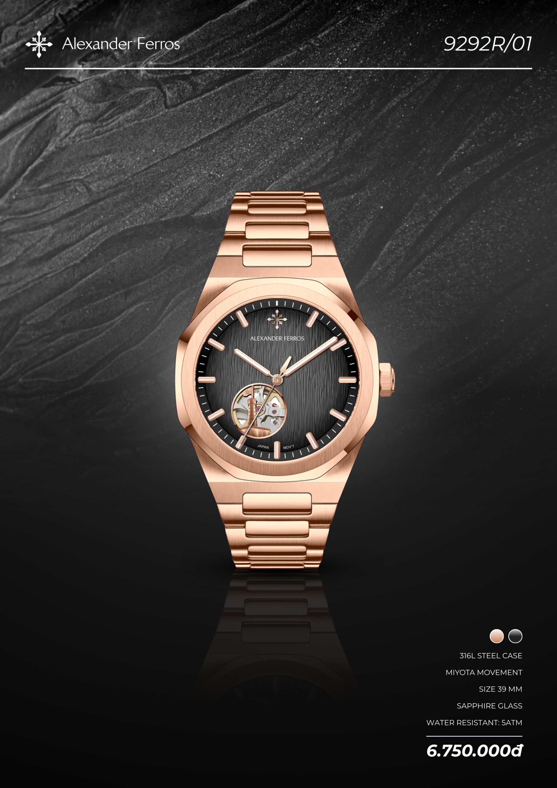 Là mẫu đồng hồ nam nổi bật với phong cách thể thao lịch lãm và thiết kế hiện đại. Mặt số với nhiều phiên bản màu được trang trí bằng họa tiết vân gỗ độc đáo, kết hợp cùng bộ kim và cọc số dạng vạch phủ dạ quang, giúp dễ dàng quan sát giờ trong điều kiện thiếu sáng. Điểm đặc biệt của mẫu này là thiết kế Open heart góc 7h kết hợp với hình ảnh Cột cờ Dinh Độc Lập mang bản sắc riêng. Vỏ được chế tác từ thép không gỉ cao cấp, mang đến sự bền bỉ và cảm giác chắc chắn khi đeo. Viền bezel cách điệu với các đường cắt góc cạnh, tăng thêm vẻ nam tính và năng động.