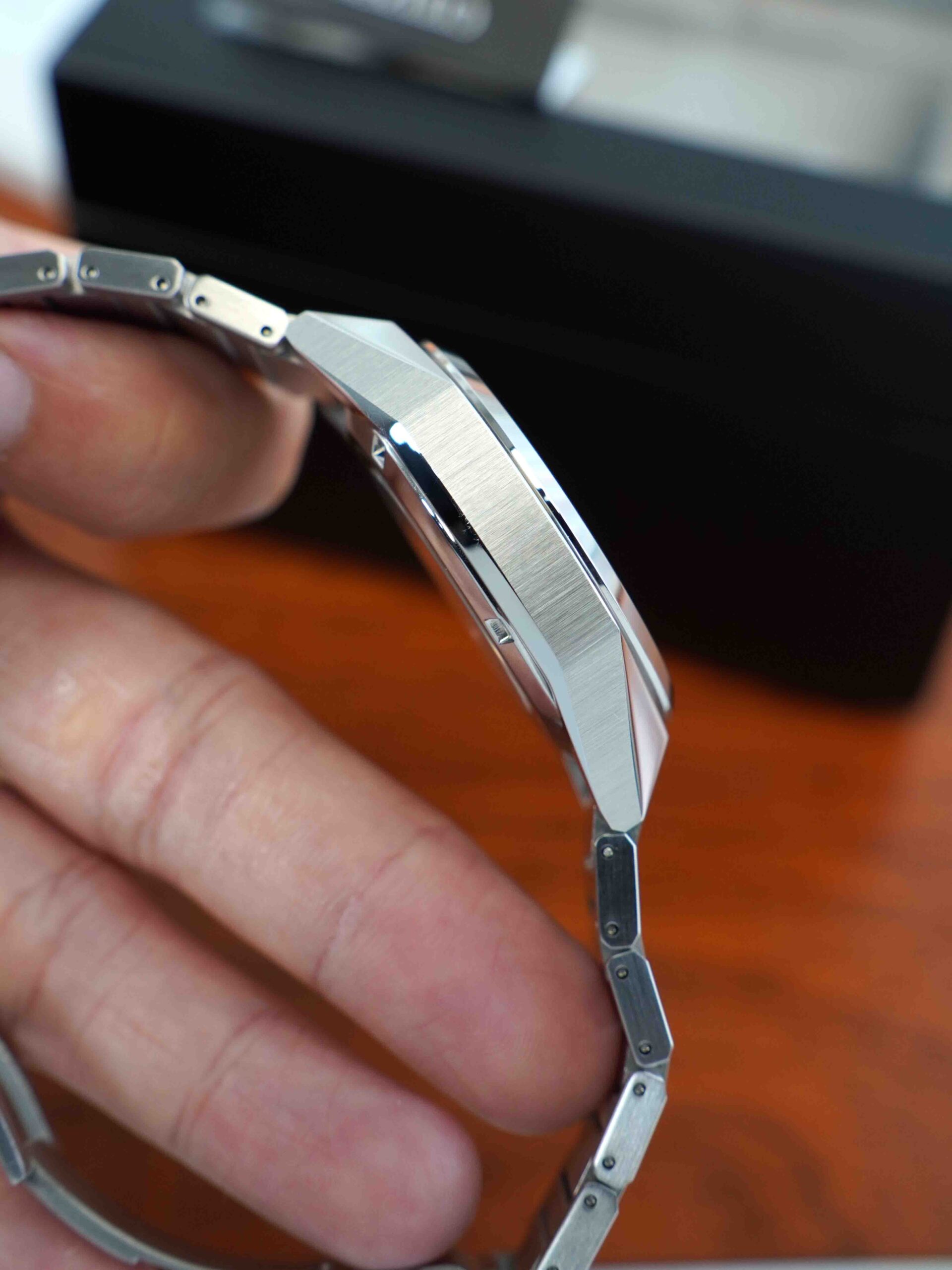 Series 8 bộ sưu tập xứng tầm cạnh tranh với các ông Thụy trong cùng phân khúc giá. Sở hữu bộ vỏ ấn tượng với các góc vác thẳng ở cả vỏ và dây , bộ máy mạnh mẽ đã tạo nên phong cách Sport Luxury cho chủ nhân sở hữu. Dial hoàn thiện cầu kỳ tinh xảo, màu sắc chuyển dần từ xanh ra đen, họa tiết với các khối vuông và sọc đan xen lẫn nhau , kim và cọc số lớn vừa xem giờ tốt vừa thể thao khỏe khoắn