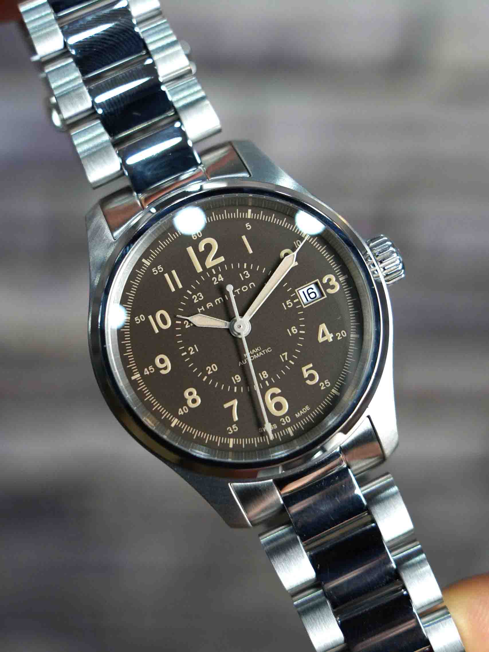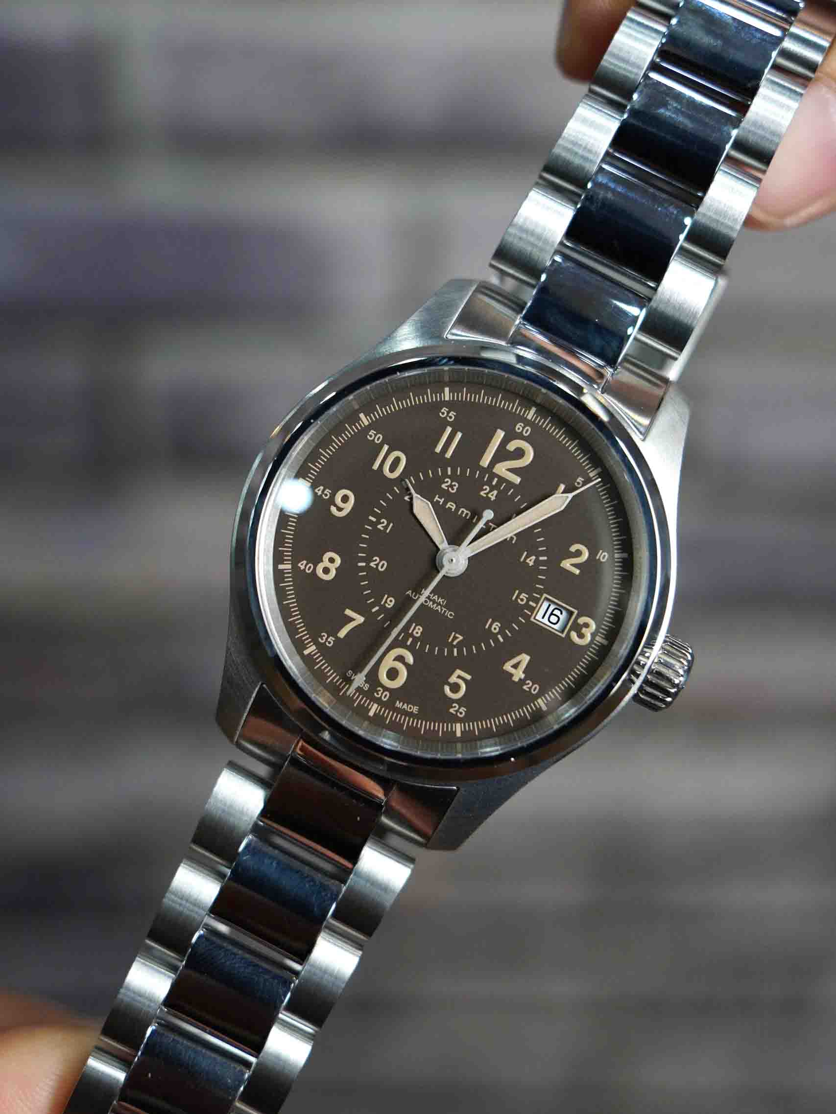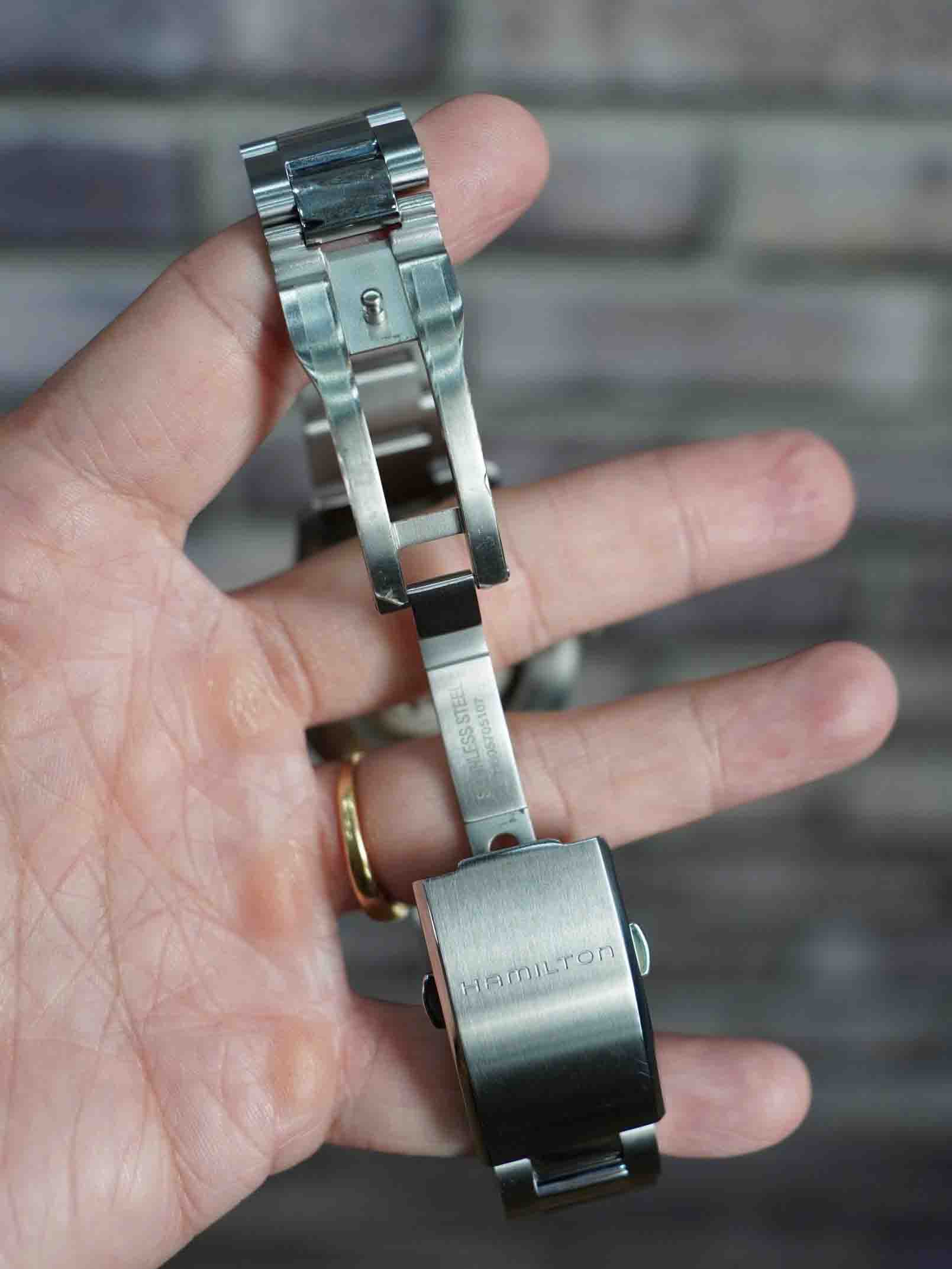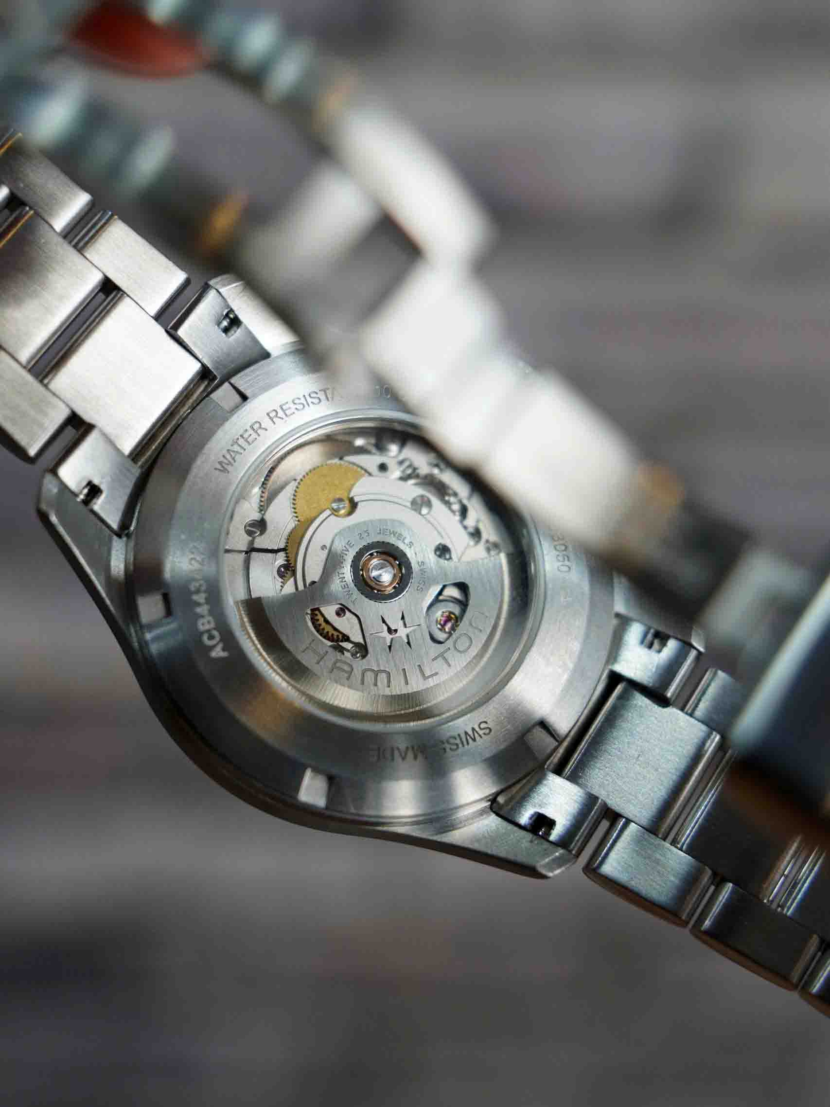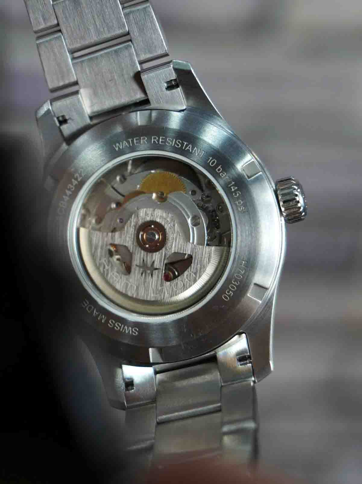 Dòng quân đội của nhà Hamilton được hoàn thiện vẫn sẽ giữ nguyên mặt số như các hãng khác. Nhưng mã này ta sẽ thấy điểm mạnh nhất sẽ là bộ vỏ được hoàn thiện với cấu trúc siêu bền : khóa đúc dày , dây đúc, cốt đúc , endlink đúc và siêu siêu vừa vặn với tai đồng hồ. Có nghĩa là ae phải có dụng cụ gắn dây chuyên dụng chứ không thể dùng vít lấy từng bên. Bên trong cũng mạnh mẽ không kém với 2 zoan ở nút và ống, pass giữ thân máy 3 ốc ( thường là 2 )