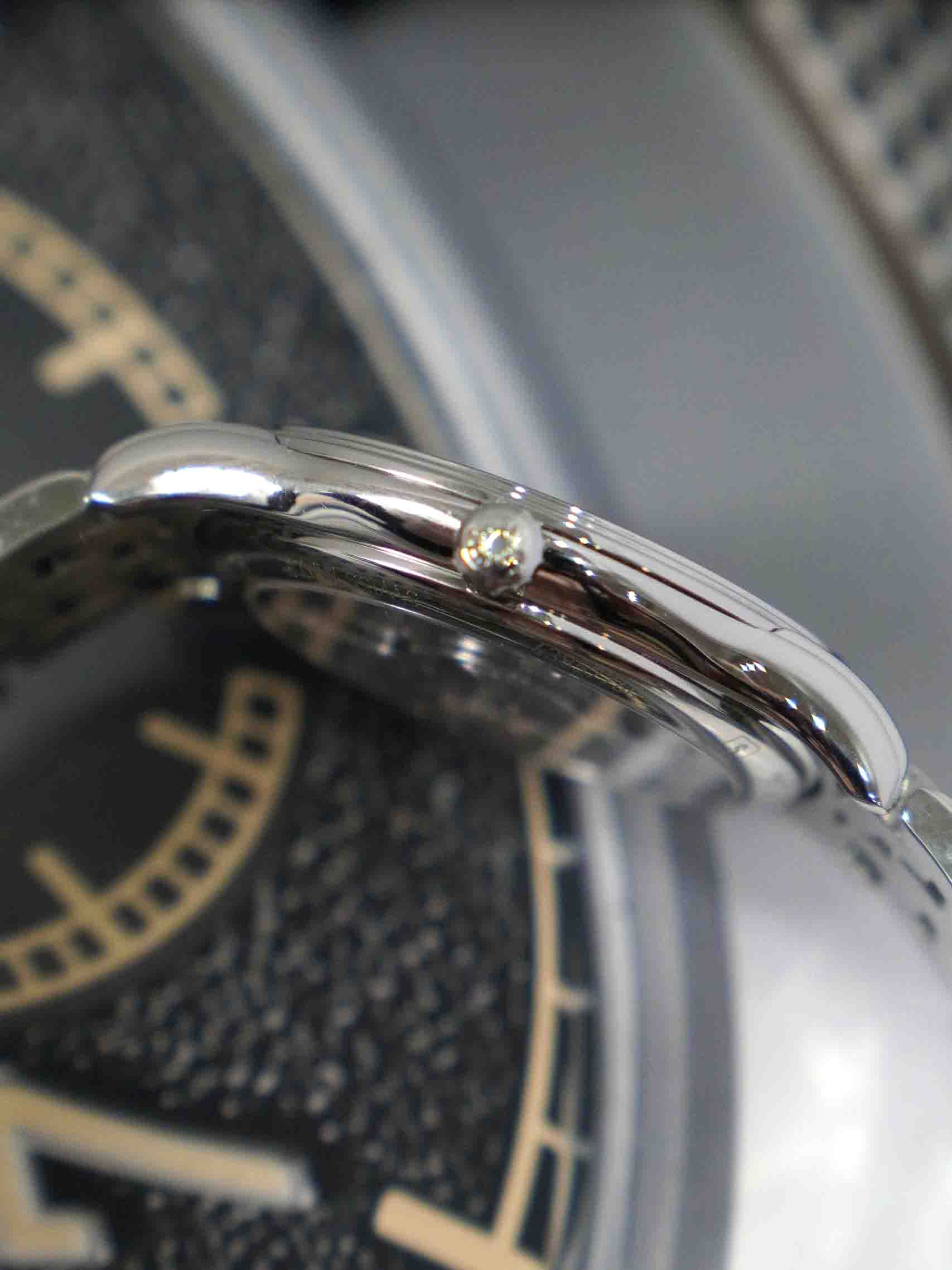 Điểm nổi bật đến từ 12 viên kim cương đính cọc số cực kỳ sang trọng và đẳng cấp nổi bật trên nền dial gold sang trọng cuốn hút