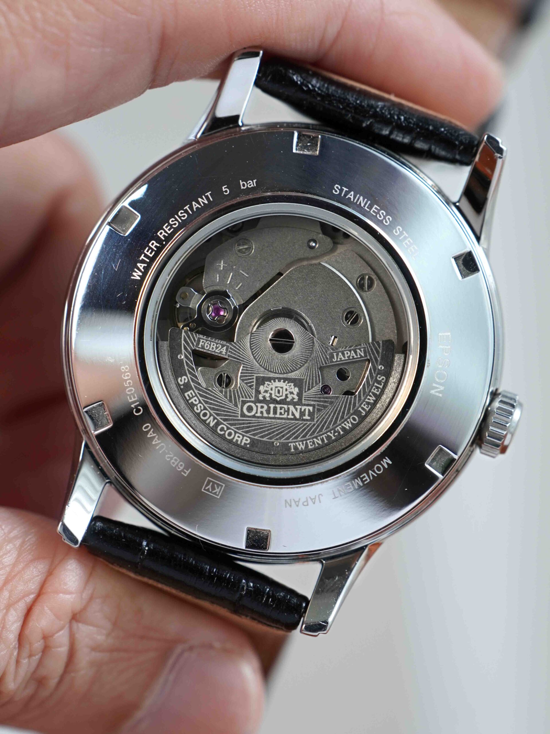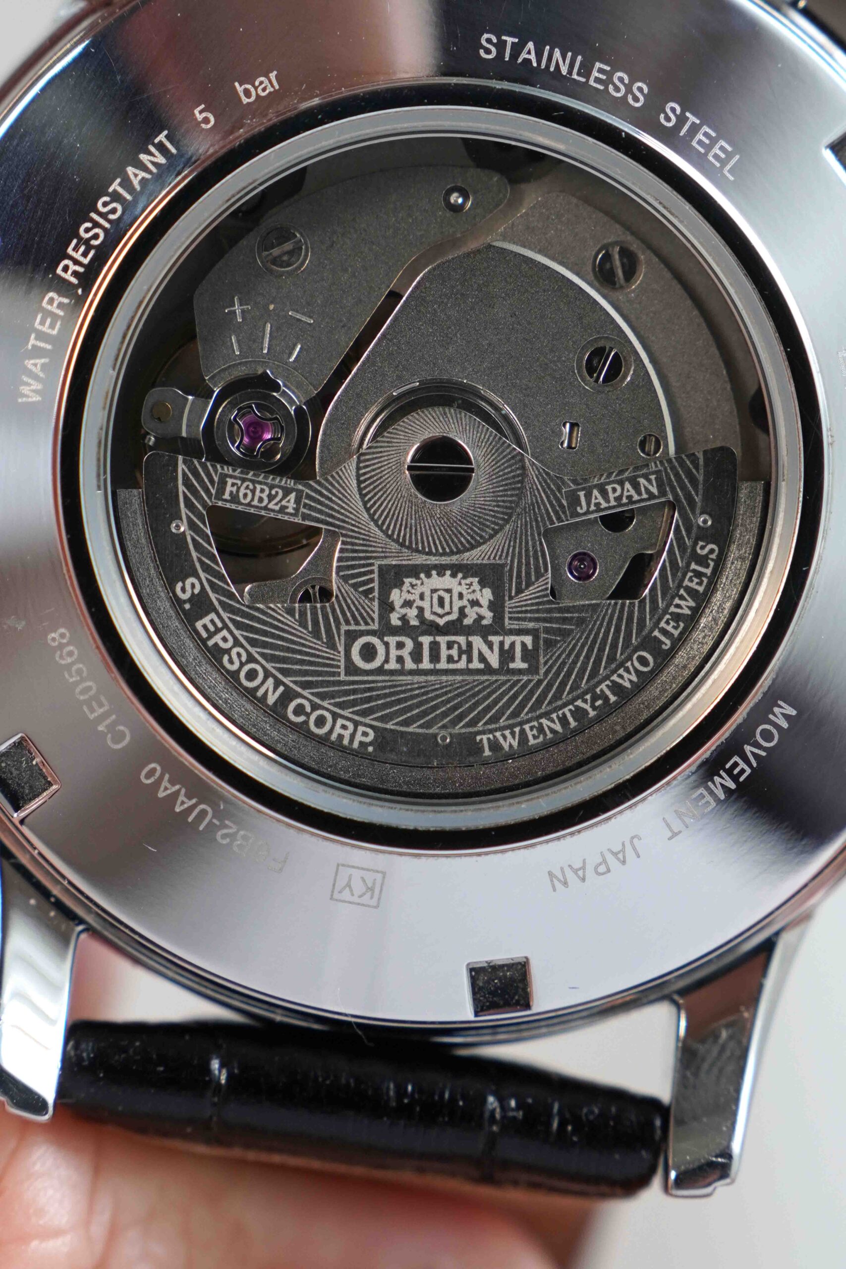 – Máy Orient F6B24 mới, với 22 chân kính, 21600 vph & 40h tích cót. Đã bổ sung Cót tay & Hacking stop (rất ngon)