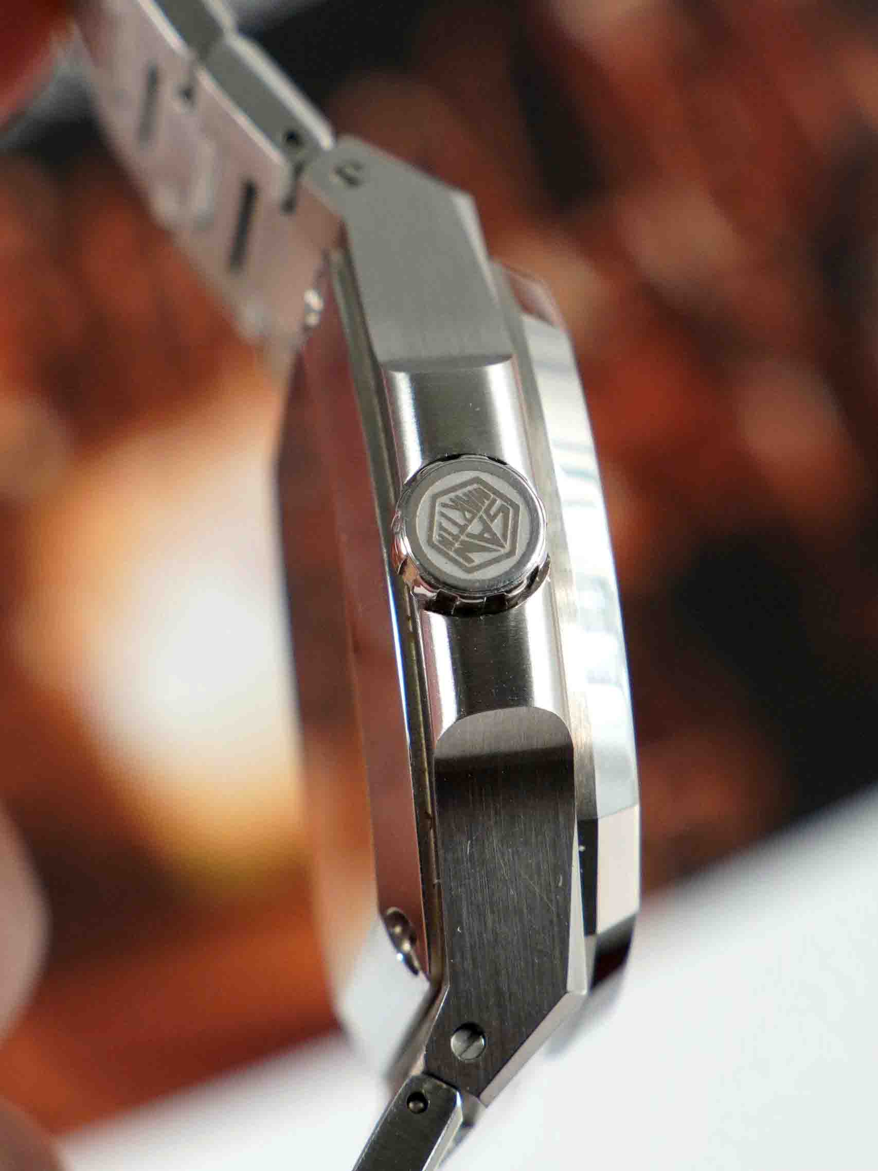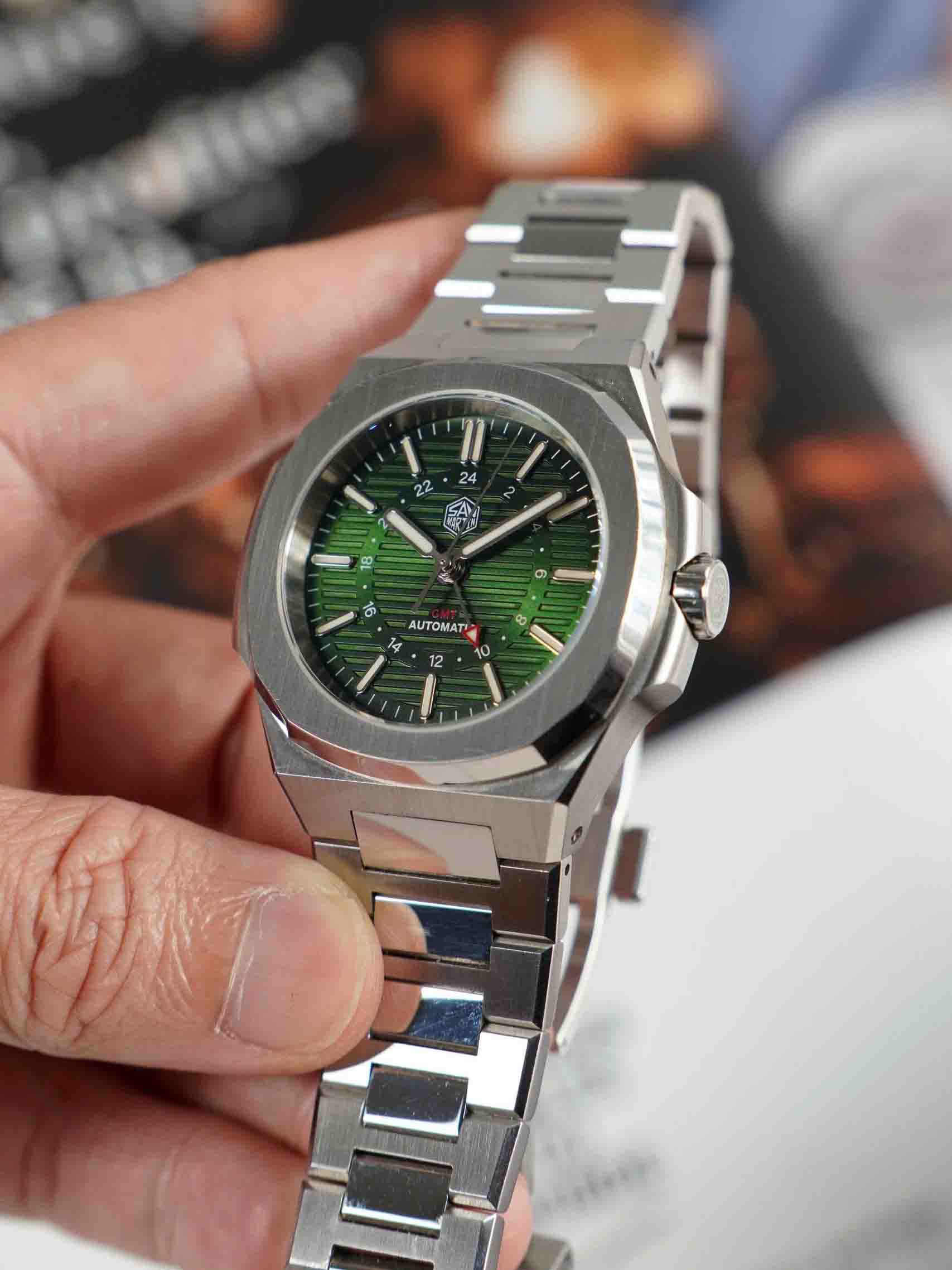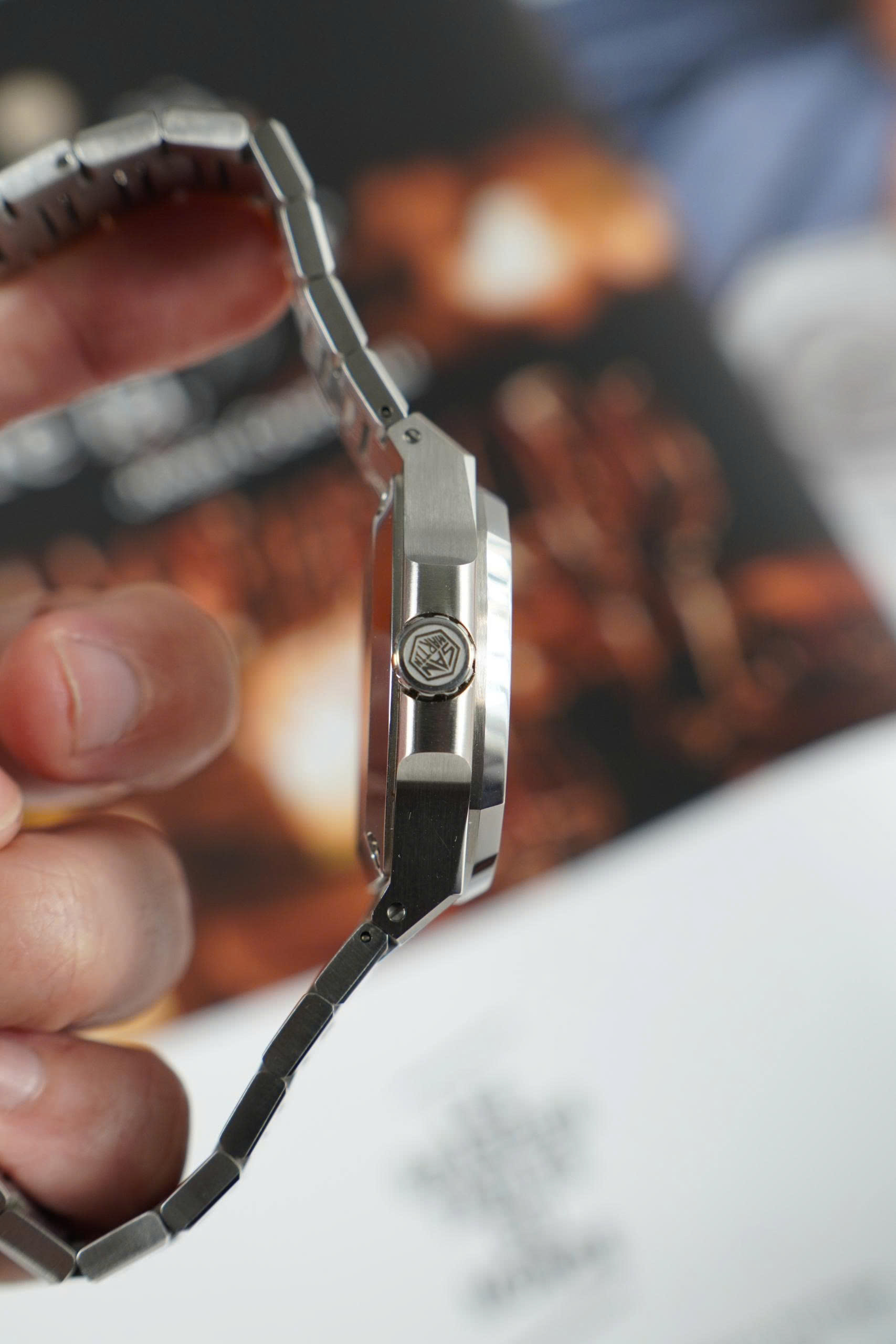 Trong cùng phân khúc San Martin gần như là đối thủ đáng gờm với khả năng chế tạo bộ vỏ xuất sắc , mọi đường nét sắc lẹm là minh chứng cho chất lượng sản phẩm. SN0075 mang dáng Nautilus hoàn thiện tuyệt đẹp với sớ bóng sớ xước thẳng tấp đan xen . Một điều nhỏ nhỏ , núm ren chiếc này vặn rất mượt mà.