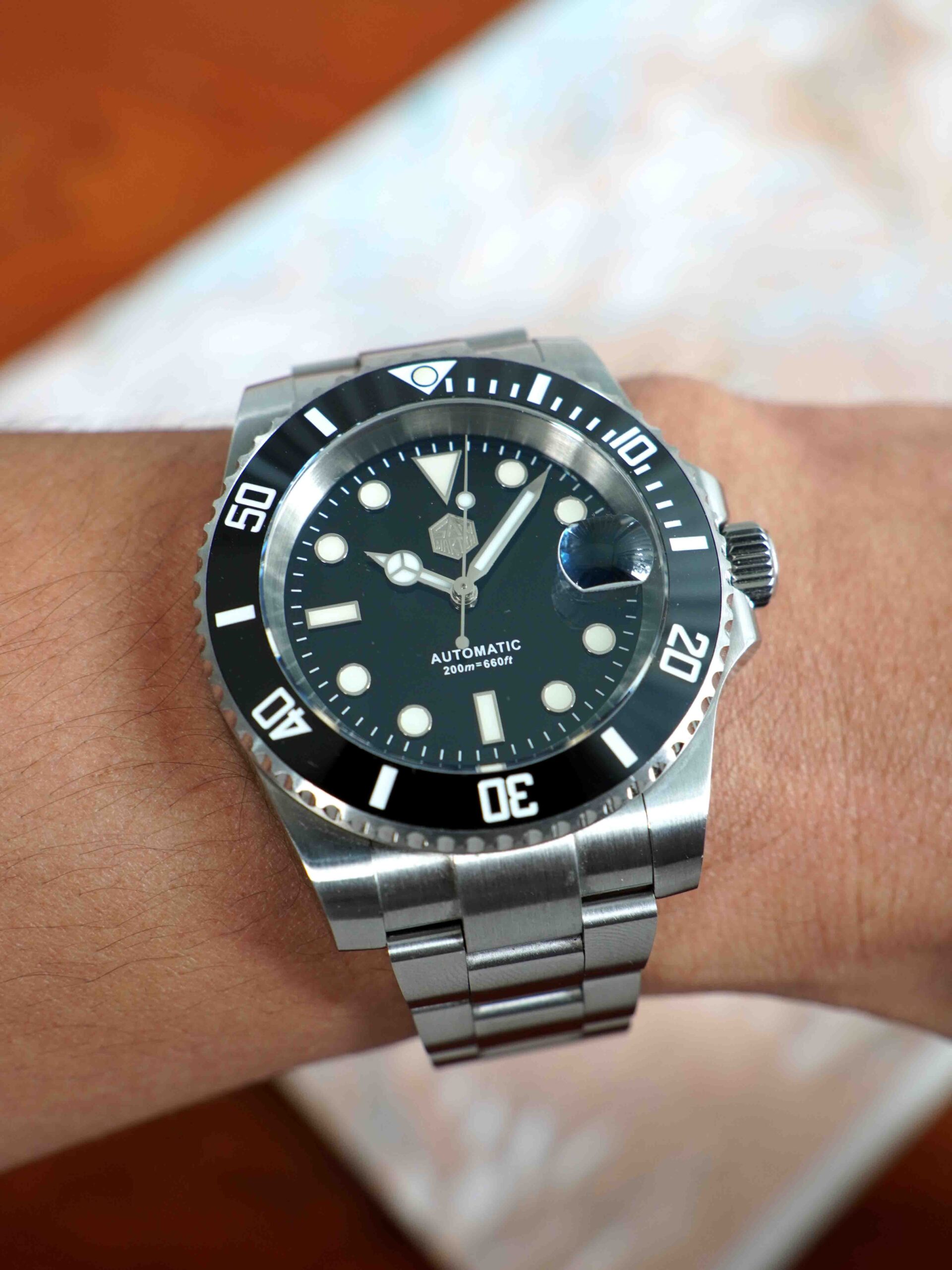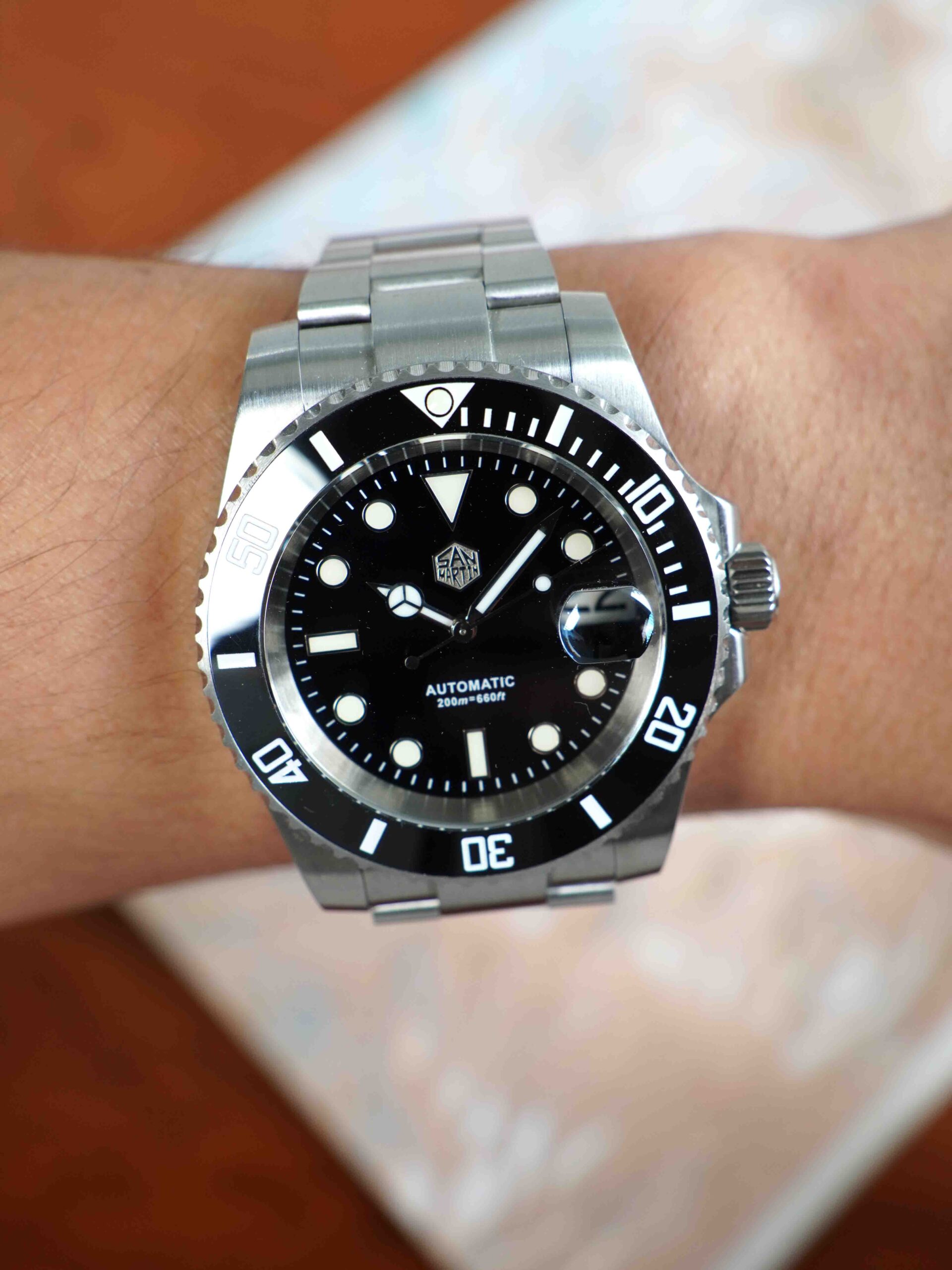 Homage lại một trong những mã cực kỳ phổ biến trên thế giới : Submariner. San Martin SN0117 là chiếc đồng hồ lặn mà ae phải có trong bst của mình ( trong phân khúc loanh quanh 5 chẹo). Hoàn thiện vượt tầm giá là điều không thể bàn cãi ở nhà San Martin , bên cạnh đó với size 40mm cực kỳ phù hợp với cổ tay châu Á